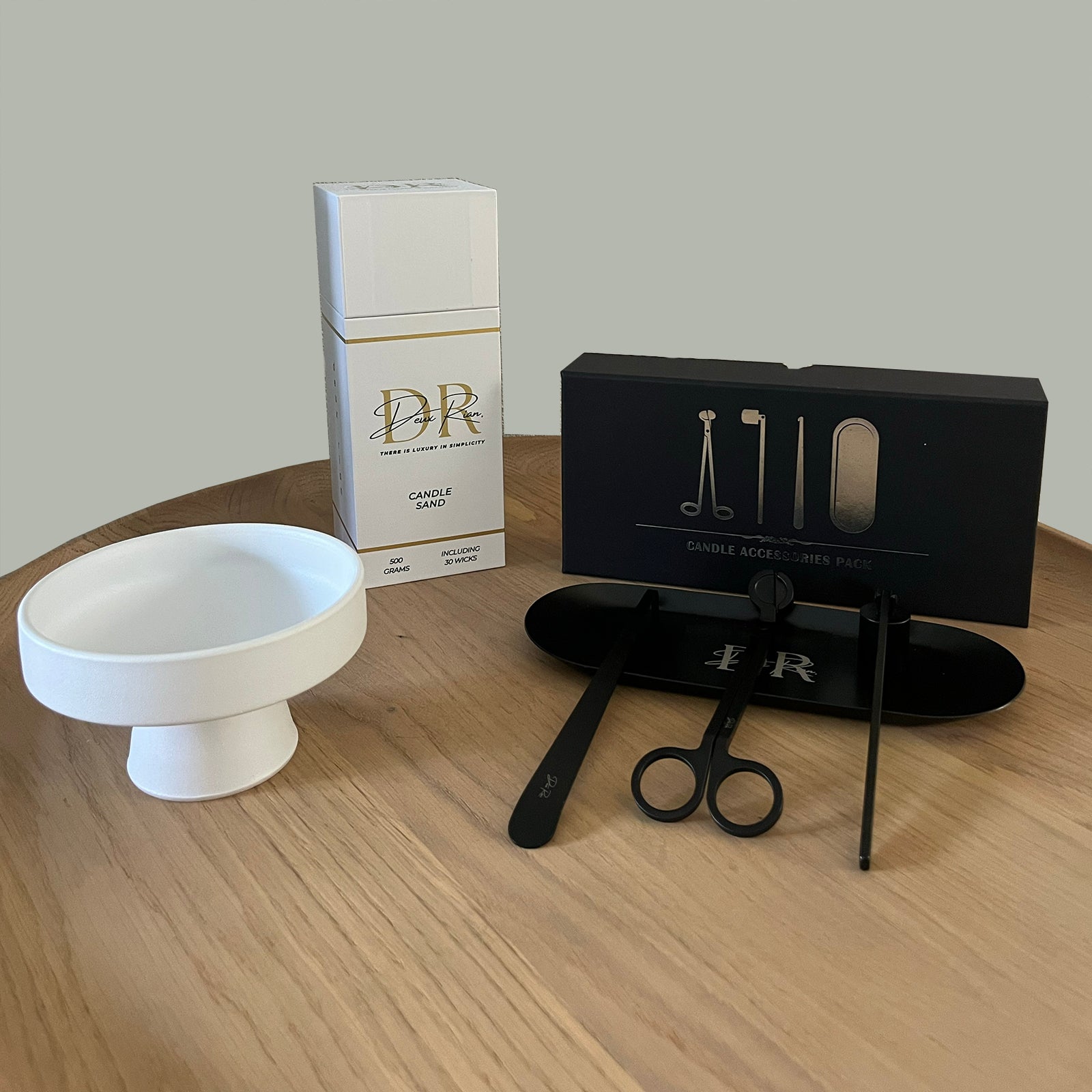 Met deze stijlvolle set maak je eenvoudig je eigen zandkaars. Het kaarsenzand brandt veilig, roetvrij en langdurig, terwijl de moderne Artic schaal zorgt voor een elegante, minimalistische uitstraling in elk interieur. Dankzij de Candle Care Set werk je netjes en veilig: doof de vlam zonder rook, knip de lont op maat en vorm het zand strak en creatief.
