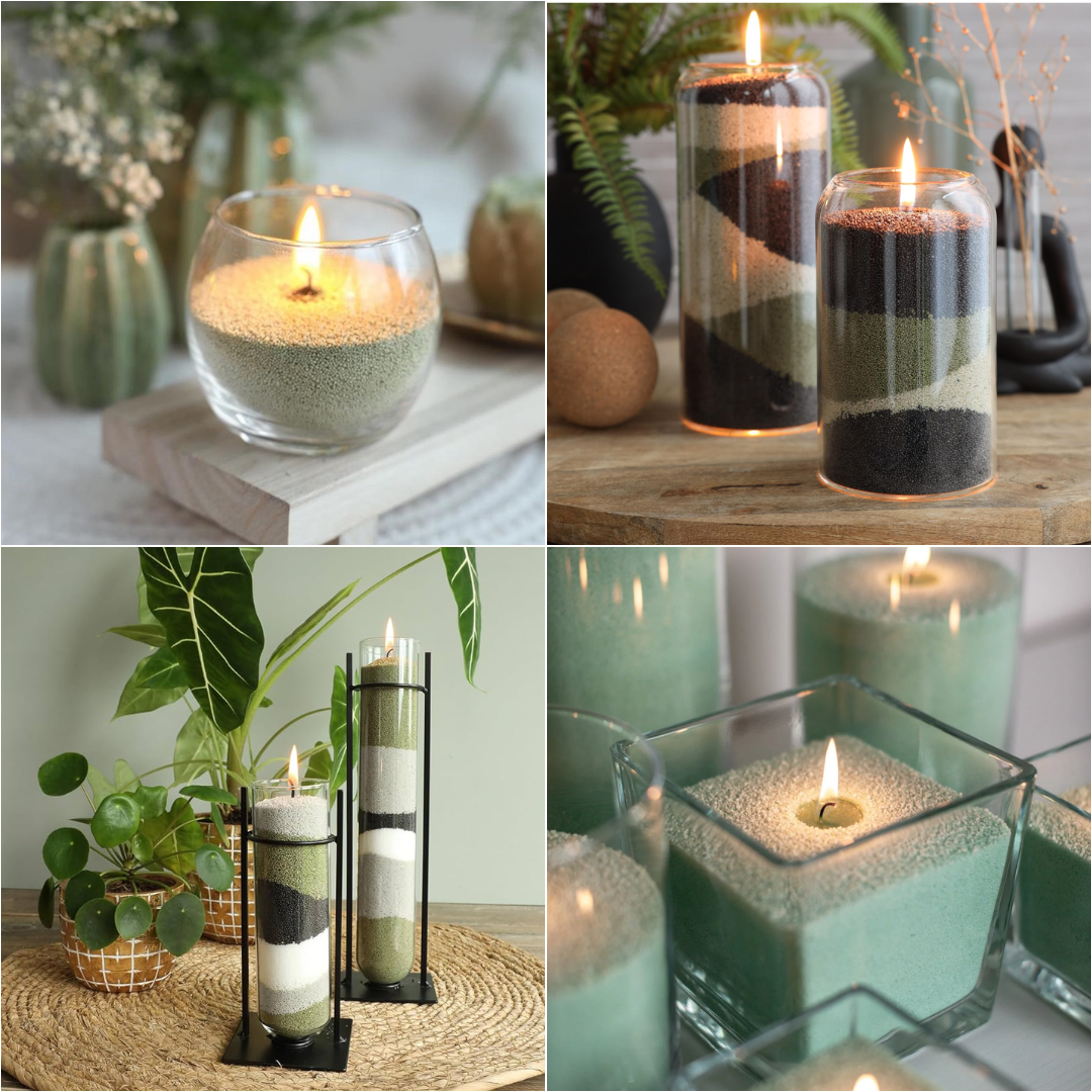 met zandkaarsen heb je eindeloze creaties, vernieuw je interieur!
