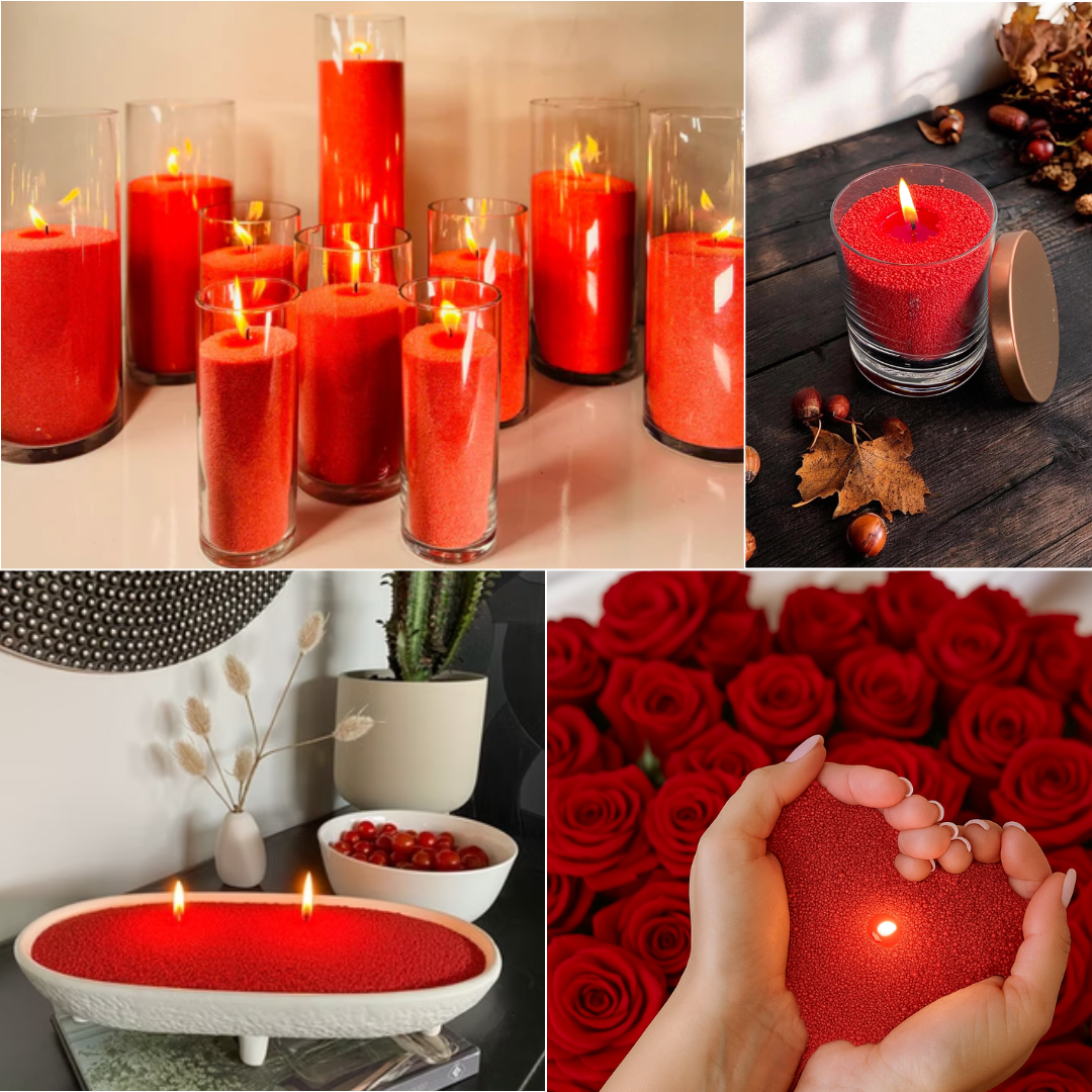 Kaarsenzand is een creatieve manier om je eigen kaarsen te maken. Vul een schaal, pot, vaas of andere decoratieve houder met zand, plaats een lont en steek deze aan. Na gebruik kun je het zand eenvoudig vernieuwen zodat je weer een gloednieuwe kaars hebt!