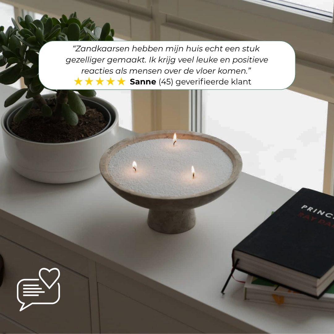 Onze zandkaarsen branden minimaal 100+ uur lang.